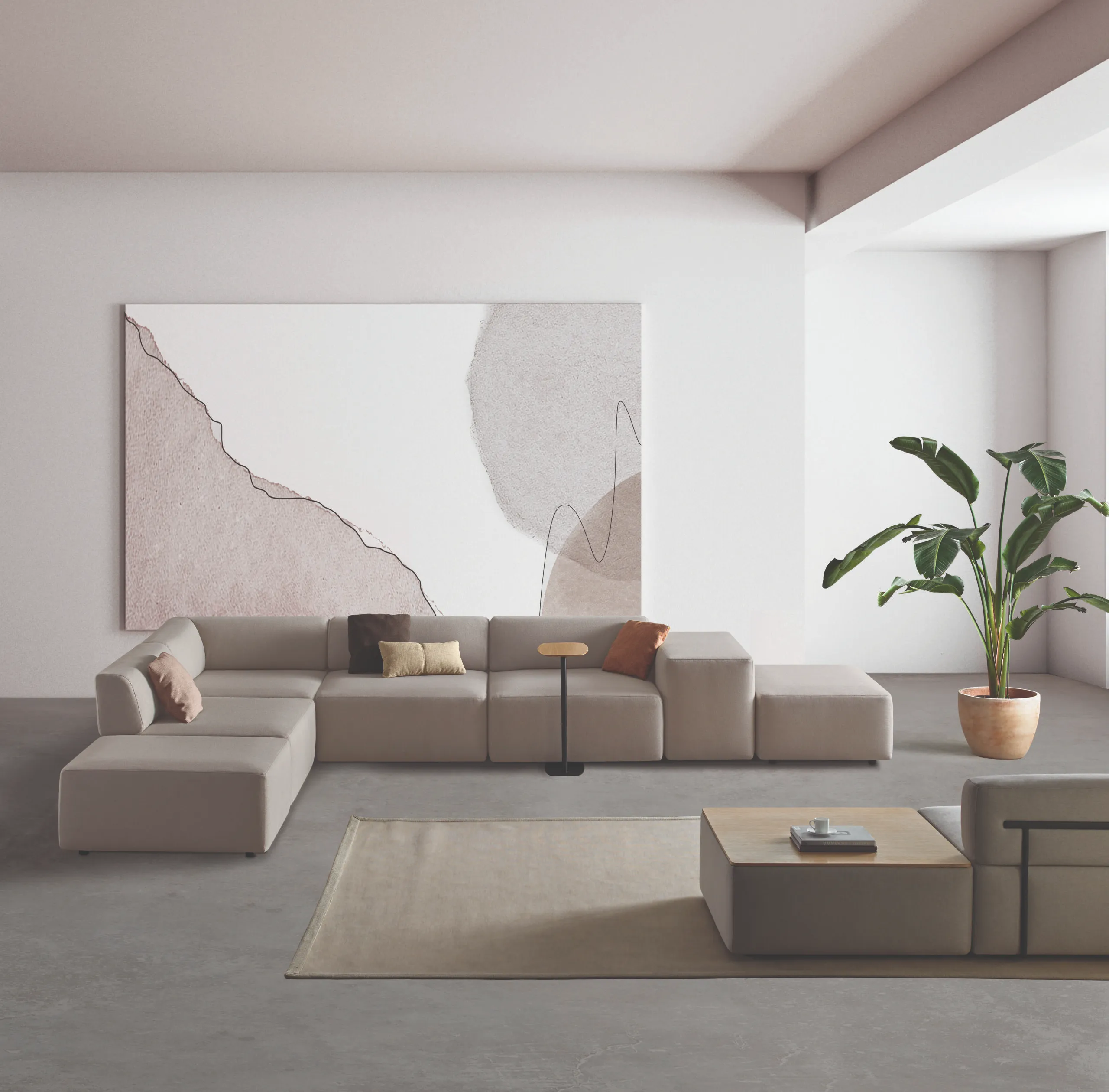 Een opvallend detail is de slanke, vrijstaande rugsteun — een kenmerkend element dat de collectie een herkenbaar en verzorgd karakter geeft. De modules zijn in verschillende maten beschikbaar en laten zich eenvoudig aanpassen aan de afmetingen en het gebruik van de ruimte. Daardoor is de Entropy inzetbaar in uiteenlopende omgevingen: van een woonkamer of hotellobby tot een kantoorlounge of wachtruimte.