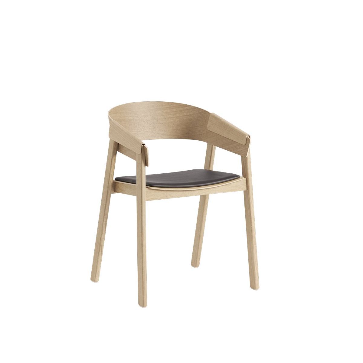 De Muuto Cover-serie, waaronder de Muuto Cover Armchair, is ontworpen door Thomas Bentzen en combineert Scandinavisch vakmanschap met een moderne uitstraling. De fauteuil heeft een gebogen rugleuning en armleuningen die doorlopen in opgevouwen fineer, wat zorgt voor een elegant en uniform ontwerp. Het frame is gemaakt van massief hout, terwijl de zitting ofwel van gelamineerd fineer is, of bekleed met textiel of leer. Dankzij de verborgen verbindingen — er zijn geen zichtbare schroeven — behoudt de stoel een naadloze en verfijnde uitstraling. Daarnaast is de niet-gestoffeerde versie van de Cover-serie EU Ecolabel-gecertificeerd, wat wijst op een lagere milieu-impact over de hele levenscyclus van het product.