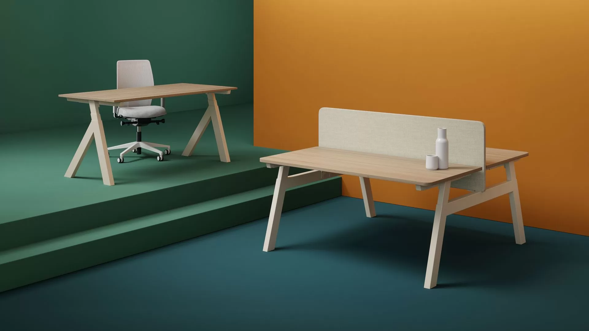 De Vepa Piqniq Duo is een eigentijdse werkplek die functionaliteit en karakter moeiteloos combineert. De iconische schuine poten geven een knipoog naar de picknicktafel en zorgen voor een lichte, open uitstraling. Dankzij de slimme hoogte‑ en bladdiepteverstelling beweegt het blad altijd recht omhoog en omlaag. Comfortabel, ergonomisch én uitnodigend voor zowel gefocust werken als korte overleggen. Perfect voor duurzame, flexibele omgevingen die met het team meebewegen.