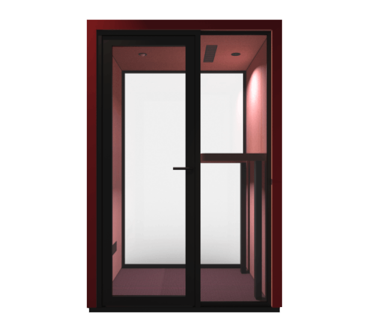 Soundproofing for privacy for users and colleagues around the pod. When the pod is placed in a quiet room or near workstations, soundproofing is of greater importance - both the sound level from inside the pod to the outside, and from outside the pod to the inside.