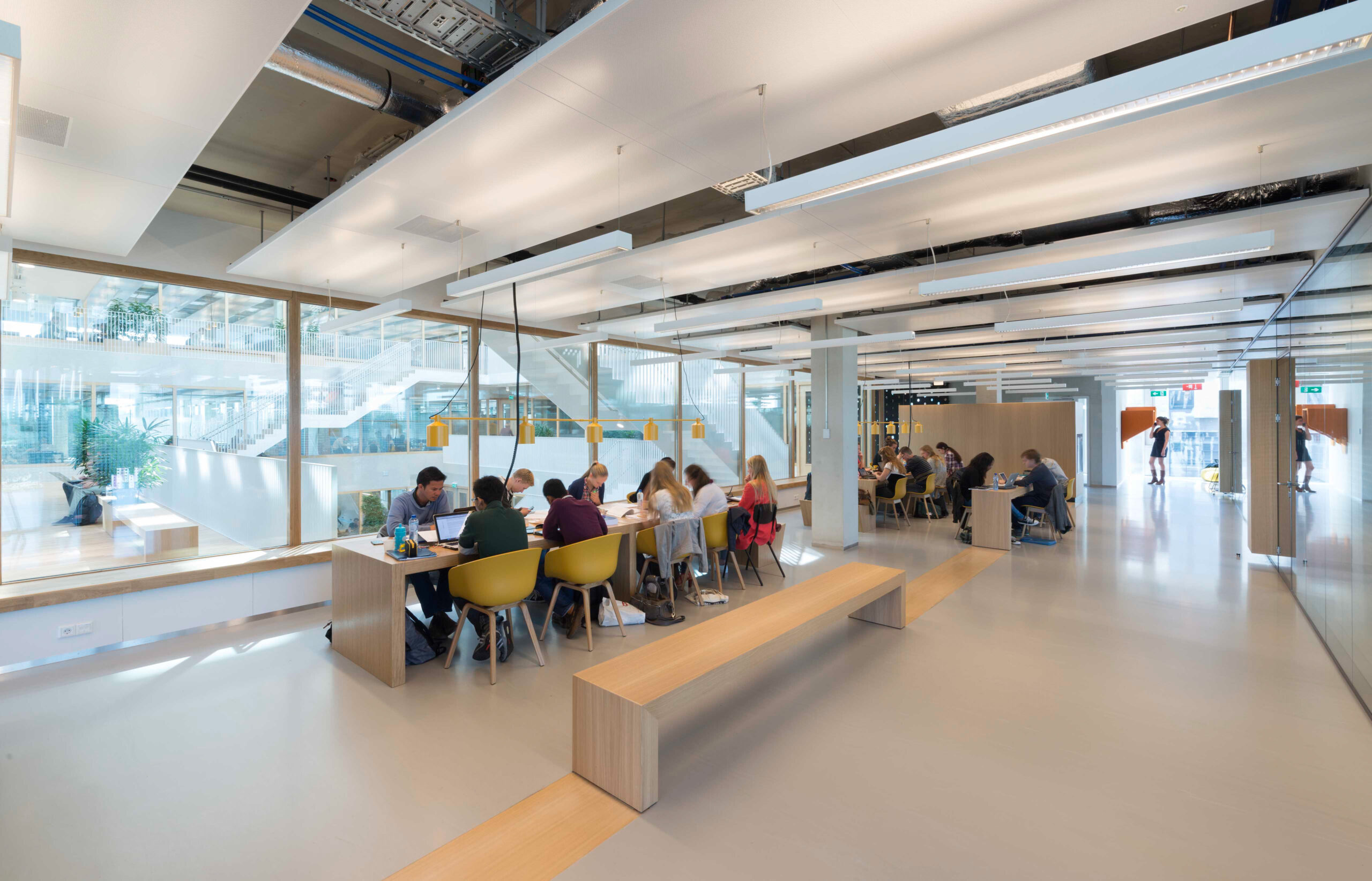 De Erasmus Universiteit wilde een duurzame en energiezuinige werk- en leeromgeving creëren voor studenten en docenten. Met onze productkennis, interieurexpertise en het brede merkportfolio hebben wij passende, duurzame oplossingen kunnen leveren die aansluiten bij de visie van de universiteit.