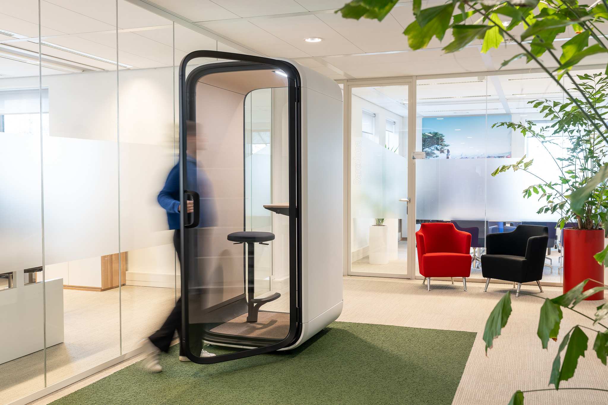 Voor ICL, met hoofdkantoor in Amsterdam, hebben we extra vergaderruimtes kunnen creëren met het plaatsen van een Framery One Compact en een Framery Six. Hiermee zijn zowel een individuele belplek als een grotere vergaderruimte is toegevoegd aan de werkomgeving. De booths zijn geplaatst in de hal/algemene ruimte, waar ze fungeren als toegankelijke en akoestisch oplossingen binnen een open setting, zonder dat een verbouwing nodig was. De combinatie van functionaliteit, comfort en uitstraling sluit goed aan bij de wensen van ICL. De ervaring is zo positief dat er binnenkort uitbreiding volgt met meerdere Framery booths.
